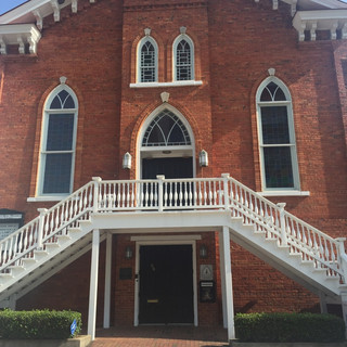 Once in Montgomery, we visited three amazing places. One was Dexter Avenue Baptist church where Reverend Martin Luther King Jr. was a pastor from 1954-1960. He organized the Montgomery Bus Boycotts (involving the great Rosa Parks) in that very basement. Walking the steps where he assuredly walked was humbling to say the least- and these were the first steps my puppy, Teddy, walked down (hey, walking down stairs is scary when theyre as big as you are!).