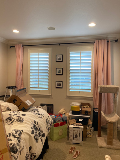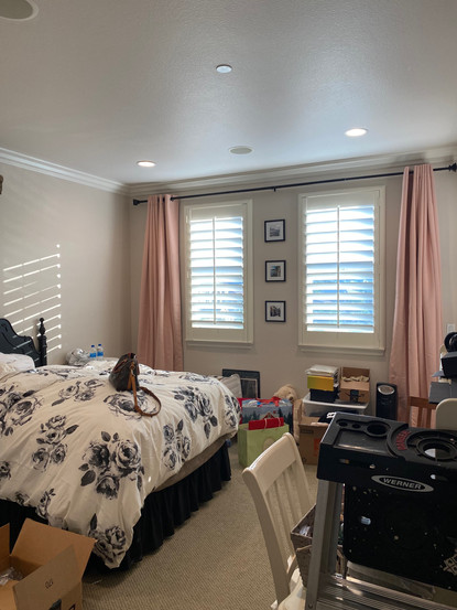 I loathe shutters. I really do. Sure, they're a good idea, but in my opinion curtains are so much more elegant, allow you to see out the window clearly, and make it so the light can really enter a room. Plus, with blackout curtains being a thing, and curtains being less than half the cost of shutters, I honestly don't know why shutters exist. I digress. When I sleep, I love absolute darkness. I'm serious. I cover up every little charging and power light, and shutters alone just don't do the trick. So I decided that although I hadn't heard of it before, I was going to do curtains on top of the existing shutters.