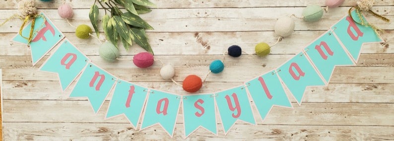 I know. If you've ever seen one of my event blogs, you already know my eternal love for banners. You saw this coming. This is always the first place I start. But this time, I had good reason! (I mean I always do, but just in case you had your doubts- lol!) What I decided to do with this theme was to pick out some of Kelsey's favorite lands within the Disneyland grounds, and make each of those lands a special place within the party. Danielle did some sleuthing to find out that some of Kelsey's favorites are Fantasyland (I mean, duh), Tomorrowland, Adventureland, and Main Street. So those became my four main focuses to channel the Disney experience.