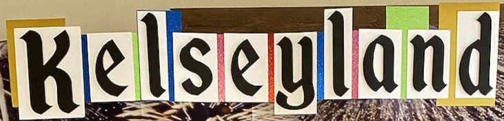 My Silhouette Portrait machine has been a game-changer. Honestly, life-changer. It has made my décor game so much better in such a short amount of time, it's insane. I used my Silhouette and new Silhouette Studio design skills to cut out lettering for each of the four lands as well as "Kelseyland" for general use, and then used it to create pennants for each of the letters to go on. Observe the final products, below: